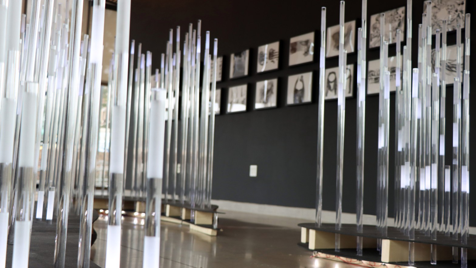 Assembling the exhibit was intense, with the weeks leading up to the exhibit’s debut regularly including eight-hour days that might consist of anything from sweeping floors to painting walls to sanding glass pipes by hand to artfully laying LED lights.
